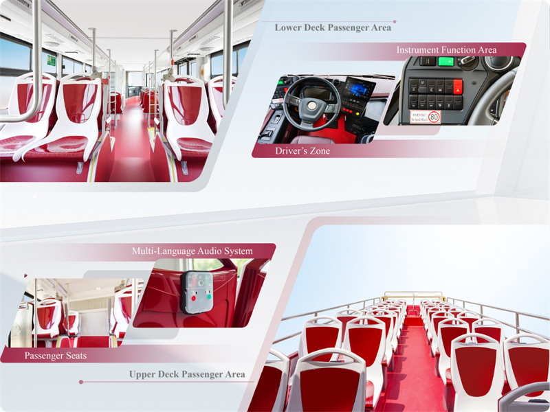O ônibus turístico de dois andares O ônibus se destaca pelas vistas panorâmicas, pelo deck superior aberto e pelas rotas flexíveis, visando precisamente os mercados de turismo urbano e passeios de curta distância. Ele enfatiza experiências imersivas para os turistas, com designs personalizáveis que combinam promoção da marca e oportunidades para fotos em pontos turísticos. Atendendo principalmente a traslados em áreas turísticas, passeios pela cidade e viagens temáticas culturais, é uma atração móvel que mescla transporte e turismo.