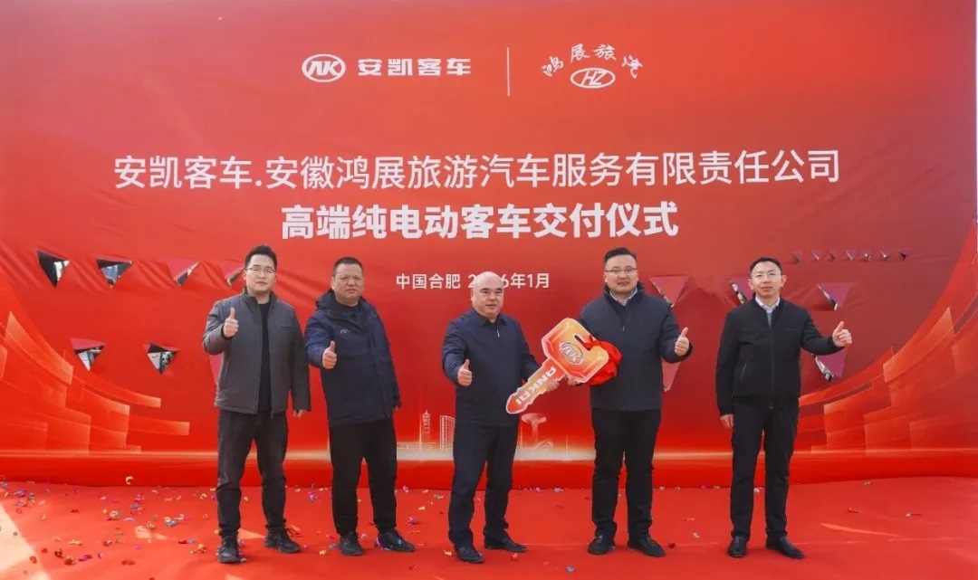 On January 6, 2026, a batch of Ankai N12E and N11E pure electric buses officially joined the operational fleet of Anhui Hongzhan Tourism Automobile Service Co., Ltd. (hereinafter referred to as "Anhui Hongzhan"). This delivery marks not only a new chapter in the years-long cooperation between the two parties but also a deep commitment to the concept of green travel. These high-quality new energy buses will help Anhui Hongzhan enhance its service capabilities, explore new market horizons, and inject strong momentum into the green transformation of regional tourism and passenger transport.
